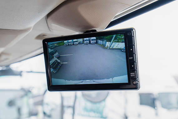 左折時のバックモニターや最新のナビなどを搭載しております。これからもドライバーが心地よく・安全に運送ができるような社内設備を整えていきます。