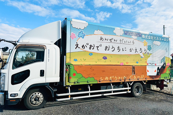 様々なイラストをトラックにペイントしています。自治体と協力し、地域に根ざした活動を行っています。